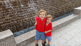 We went to Kansas City this past weekend to see Jason, Sam, and Evelyn. We had so much fun. We greatly enjoyed our drive more since we had it in our new car (Subaru Outback). Some highlights of our trip include seeing Baby Evelyn of course, the aquarium, Lego Land, ice cream, crayola store, playing with Miles and Maggie, toy store, art museum just Jon and I, and a fabulous double date night out to Blue Stem. Papa Buzz came along and was a huge help too. I asked Garrison his favorite part of the trip the night we got home and he said the doggies and Baby Evelyn. I hope that they always play a huge part in the boys life. We love our Kansas City Lindsey Family.